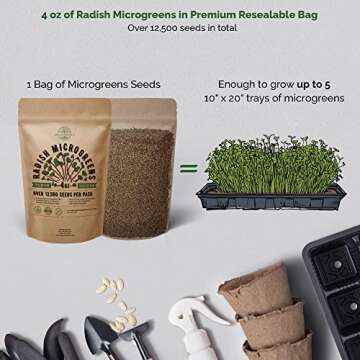 Show moreUnleash your inner gardener with the Organo Republic Radish Sprouting & Microgreens Seeds. This exceptional  is packed with 4oz of high-quality, non-GMO, heirloom seeds, allowing you to cultivate your own nutritious microgreens directly at home or in your garden. With over 12,500 seeds per pack, you have the potential to grow up to 5 trays of delicious radish microgreens for under $1.25 each! Enjoy the ease of growing from the comfort of your kitchen or patio, employing soil, coconut coir, or even a hydroponic system. Our specially designed seeds guarantee a quick germination process, offering fresh and flavorful sprouts in just a few days, perfect for enhancing your salads and meals.