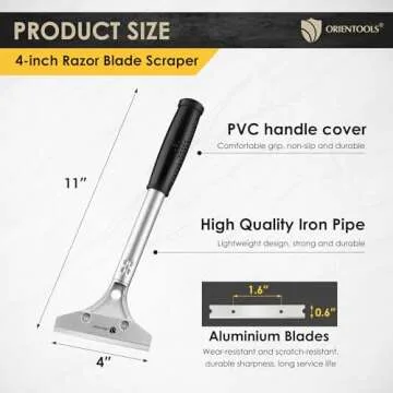 ORIENTOOLS Heavy Duty 4-inch Razor Blade Scraper with Long-Handle, Cleaning Glass Wall Scraper, Painting stripping tools,Tile Adhesive Removal