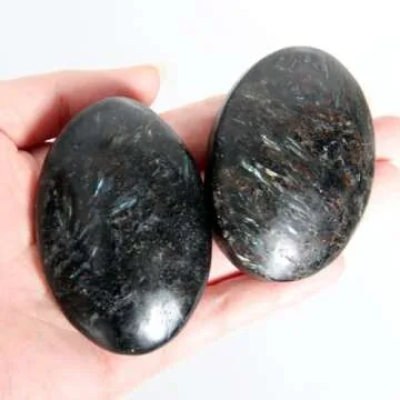 Orientrea 2PCS Astrophyllite Worry Stone- Healing Crystals, Astrophyllite Palm Stone, Natural Thumb Pocket Gemstones Decor, Chakra Balancing, Reiki, Mediation(2pcs)