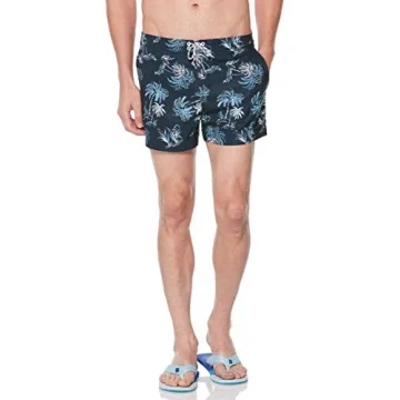 Original Penguin Men's Printed Fixed Waist Volley Swim Short, Dark Sapphire Palm, S
