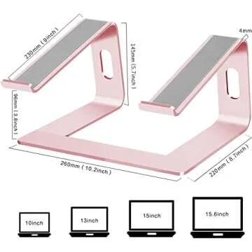 Orionstar Laptop Stand Aluminum Laptop Riser Compatible with Mac MacBook Air Pro 10 to 15.6 Inch Notebook Computer, Ergonomic Elevator Holder (Pink)