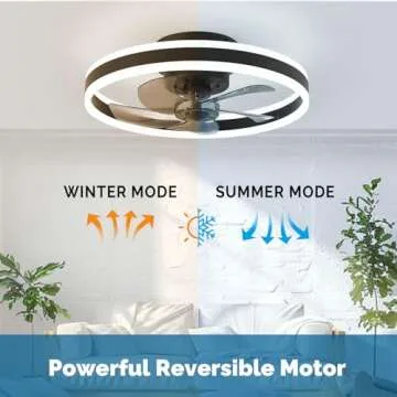 Orison Low Profile Ceiling Fan with Light - Modern Flush Mount Enclosed Ceiling Fan 19.7" LED Dimmable Bladeless Ceiling Fans with Remote Control,Smart 3 Light Color and 6 speeds(Black)