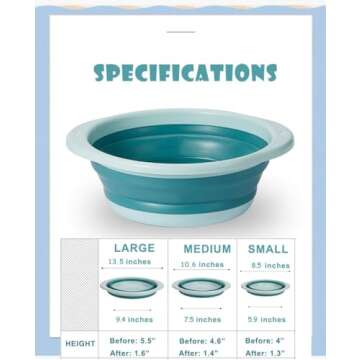 Why You Will Love This Product: The ORIZZP 3-Pack Collapsible Wash Basin Set brings unrivaled convenience to your cleaning routines, turning a once clunky task into an effortless chore. With its thoughtful design that simplifies storage and maximizes utility, you can wash, store, and transport with ease and style. Enrich your outdoor experiences, and feel confident that you have the tools at hand to tackle any situation. Whether you are enjoying a picnic or cleaning up after dinner, these basins will become your go-to essentials.