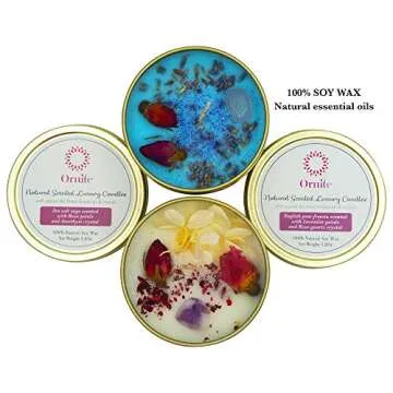 Ornite Scented Crystal Candles Gift Set with Amethyst, Rose Quartz & Dry Flowers | Sea Salt Sage & English Pear 6.4Oz 100% Soy Wax | Decorative Home Aromatherapy Gift for Easter & Her Birthday