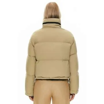 Orolay Women's Cropped Puffer Jacket Winter Stand Collar Quilted Down Coat Warm Fashion Zip Up Outerwear with Pockets Khaki Medium