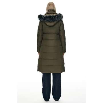 Orolay Women's Quilted Down Jacket Winter Long Coat Hooded Stand Collar Parka Green S