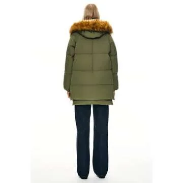 Show moreIntroducing the Orolay Women's Thickened Down Jacket, your ultimate winter companion that masterfully blends style, warmth, and functionality. Crafted with care, this mid-length coat is designed exclusively for women and is brand certified to the Responsible Down Standard (RDS). You can feel good knowing that while it keeps you toasty in the cold, it also utilizes responsibly sourced materials. The luxurious faux fur collar not only adds an elegant touch, but its unique crumple design enhances your fashionable appearance.This stylish down coat safeguards against harsh winter elements without sacrificing aesthetics.