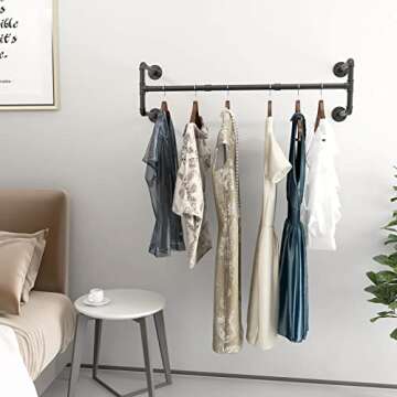 Show moreThe **OROPY Clothes Rack** effortlessly blends functionality with a stylish retro aesthetic that is ideal for any space. Designed with **vintage metal pipes**, this clothes rack showcases an industrial look that complements a variety of interior styles, from rustic to modern. Measuring at **44.3 inches in length and 12.2 inches in width**, it offers ample hanging space while maintaining a sleek profile. Crafted from **strong black malleable iron**, this rack is not only **extremely durable** but also supports a significant amount of weight, keeping your garments and accessories organized in style.