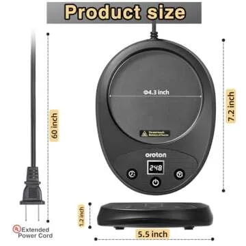 Oroton Mug Warmer for Coffee and Tea, Auto Shut Off,4.3 Inch Large Heated Plate,8 Temperature Settings, 1-8 Hour Timer Settings, Smart Coffee Warmer Plate Milk Tea Water(Black)
