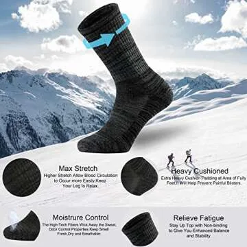 Ortis Men's Merino Wool Cushion Crew Socks with Moisture Wicking Control