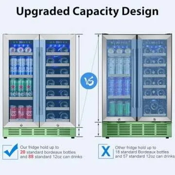 This fridge can hold up to 20 bottles of wine and 88 cans, making it perfect for large collections.