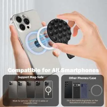 Orzero Magnetic Silicone Suction Cup MagSafe Phone Case for iPhone 16/15/14/13/12 Series with Metal Ring for Any Other Phone, Powerful Hands-Free Sticker for TikTok Videos and Selfies (Black)