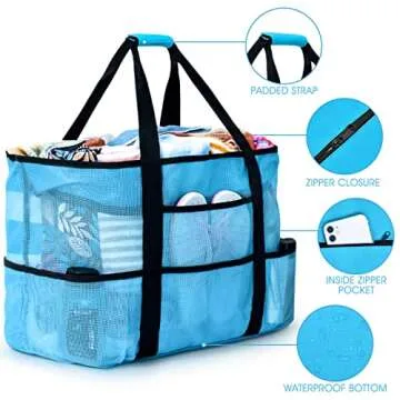 Constructed from a specially chosen mesh waterproof material, the Oscaurt bag is not only sturdy but also lightweight, able to withstand the tests of time—up to 5 years longer than typical mesh bags! The waterproof bottom protects your belongings from wet sand and keeps everything safe and dry.