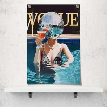 Transform your living space with the Osdfem Trendy Hot Girl Disco Ball Print Poster, a vibrant and eye-catching decorative piece designed for the modern, fun-loving individual. Measuring an optimal 16x24 inches, this unframed poster perfectly captures the essence of disco culture, featuring a striking disco ball against a backdrop of colorful cocktail aesthetics. Ideal for anyone looking to inject some energy into their home or dorm room, this print adds a playful yet sophisticated touch...