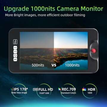 Show moreIntroducing the Osee T5+ 5.5 Inch 1000nits Camera Monitor, a game-changer in the realm of outdoor filming. With its impressive brightness of 1000nits, this monitor doubles that of traditional entry-level options, allowing you to achieve vibrant visuals even in direct sunlight. Featuring a stunning color depth of 1.06 billion colors and a spectacular contrast ratio of 1000:1, the Osee T5+ elevates your shooting experience by delivering crisp, sharp images that captivate your audience. This unparalleled brightness makes it an essential tool for filmmakers, ensuring you're always equipped for dynamic outdoor environments without the need for a sun hood.