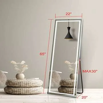 osemy 65"x 22" LED Full Length Mirror with Lights, Lighted Full Body Mirror, Dimmable Light up Touch, Free Standing, Wall Mounted/Leaning