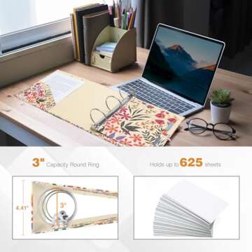 Show moreDiscover the perfect companion for your organizational needs with the Ospelelf 3 Ring Binder, a stunning binder that effortlessly marries function and style. Adorned with a delightful floral design, this binder is not just a practical office tool—it’s a vibrant addition to any workspace that inspires creativity and productivity. Measuring at an impressive 12.24 x 12.68 x 4.41 inches and boasting a robust 625-sheet capacity, this binder is crafted to accommodate all your 8.5 x 11-inch documents, making it the ultimate solution for students and professionals alike.