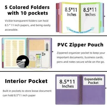 Show moreIntroducing the Ospelelf Foldable Spiral Clipboard Folio! This versatile and stylish clipboard organizer is designed for efficiency and maximum functionality, making it the perfect companion for anyone from students to professionals. Crafted from premium materials, it features a sturdy metal clip and a double screw coil that provides an exceptional grip and secure storage for all your important documents. The innovative design includes a clear zipper pouch, 5 plastic folders with a whopping 10 pockets, and a refillable lined notepad (11" x 8.5") — ensuring every aspect of your organizational needs is covered. Available in a vibrant purple that pops, this clipboard folio is not just practical; it’s an eye-catching accessory for your busy life, whether you're in a classroom, at the office, or on the go.
