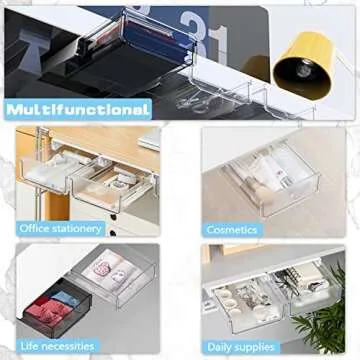 OSPNIEEK Self-adhesive Under Desk Drawer Organizer, 2 Pack Table Hidden Slide Out Large Storage Mounted Desktop Pencil Holder Tray Drawers for Office Home School Stationery Kitchen (White)