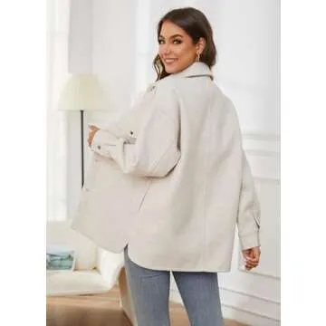 Show more The OSTOO Women's 2025 Oversized Lightweight Long Sleeves Shacket Jacket merges classic style with modern functionality, ensuring you stay chic and comfortable through the chilly seasons. Crafted from a soft wool blend, this fashionable coat features a trendy lapel collar and a crisp button-down front, providing a relaxed oversized fit that flatters every body type. The design includes two front cap pockets as well as convenient side pockets, perfect for storing essentials while you're on the go. With its lightweight yet warm fabric, this versatile jacket is designed for layering, allowing for endless styling opportunities whether you're heading out for errands or a cozy evening out.