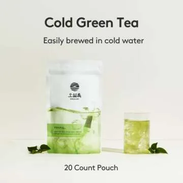 OSULLOC Cold Green Tea, Stick-Type in Pouch Package, Premium Organic Pure Tea from Jeju, 20 count, 1.41 oz, 40g
