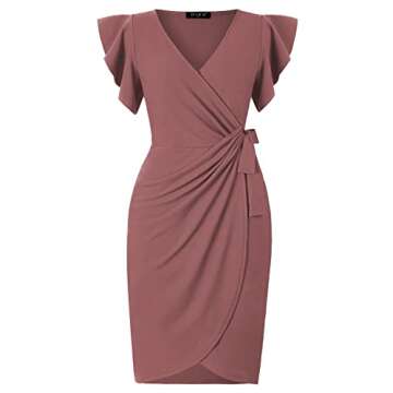 Show moreIntroducing the otem Women's Classic Ruffle Sleeve V-Neck Tie Belt Wrap Bodycon Dress, an exquisite blend of elegance and comfort that perfectly caters to the modern woman's wardrobe needs. Crafted with a flattering design and made from soft, breathable materials, this stunning dress is an excellent choice for both professional and social settings. The ruffle v-neckline and hidden side zipper ensure a stylish appearance while allowing for easy wear. The unique draped waist and tie belt provide a customizable fit, accentuating your curves in all the right places, making it a must-have staple for any occasion.