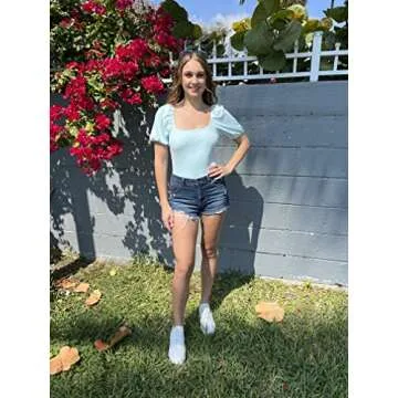 ote Women's Summer Backless Puff Sleeve Bodysuit – Light Blue Elegance for Every Occasion