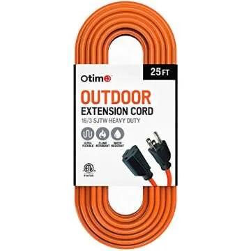 Introducing the Otimo 25 Ft 16/3 SJTW Outdoor Extension Cord, an essential tool for both indoor and outdoor use crafted to meet your needs effectively. With its robust construction, this power extension cord is manufactured from high-quality SJTW material that is not only flame retardant but also provides exceptional abrasion and water resistance. The flexibility of the cord allows for easy handling and storage, making it the perfect choice for various applications. Whether you're powering...