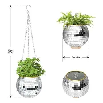 Show more This stunning Disco Ball Plant Hanger is the perfect addition to your home or dorm room, elegantly combining fun aesthetics with practicality. Made by an innovative brand that understands the trends in plant decor, this planter emphasizes both style and functionality. It's beautifully crafted from durable materials, allowing it to hold a medium-sized plant securely while adding a touch of glamour to your space.