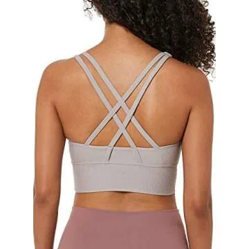 Ouber Women's Ribbed Sports Bras High Impact Strappy Back Fitness Yoga Bra (L/US 8,Grey)