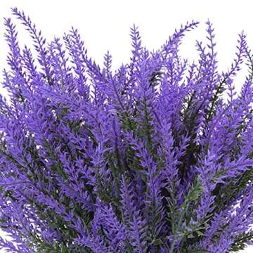 Show moreTransform your living spaces into a garden of bliss with the Ouddy Decor 12 Bundles Artificial Lavender Fake Flowers! Crafted with attention to detail, these stunning faux lavender arrangements bring the essence of nature right to your doorstep. Made from premium, UV-resistant plastic, they promise to maintain their beauty and vibrancy over the years. Each bundle measures a striking 14.57 inches in height and includes 5 flower branches that replicate the rich, authentic look of real lavender – making them virtually indistinguishable from fresh blooms. Perfect for enhancing your home, garden, or office, these artificial flowers provide a splash of color all year round, bringing joy without the need for upkeep.