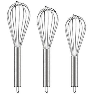 Our set includes a 12-inch balloon whisk for large bowls of pancake batter, a 10-inch whisk perfect for eggs, and an 8-inch whisk that’s ideal for small batches of vinaigrettes and sauces. Whether you’re a home cook or a professional chef, this versatile set promotes creativity and precision in the kitchen, enhancing all your culinary adventures.