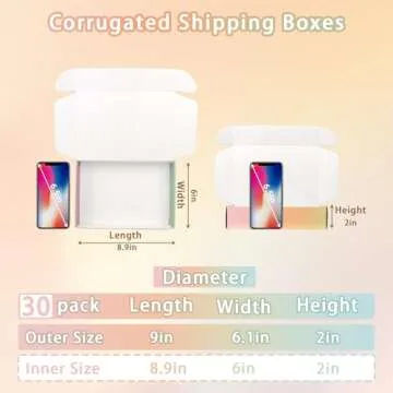 OUGEBOX 30 Pack 9x6x2 Colorful Shipping Boxes Medium, Mailing Cardboard Boxes for Packaging Small Business Waterproof