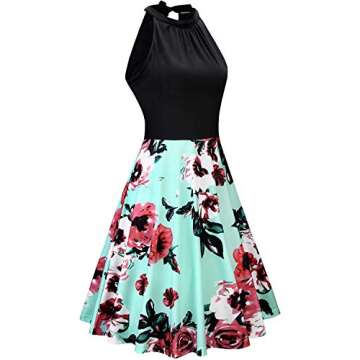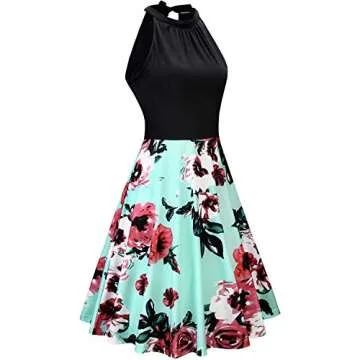 OUGES Halter Dresses for Women Summer Formal Wedding Guest Dress Homcoming Dress A Line Prom Dress(Floral03,M)