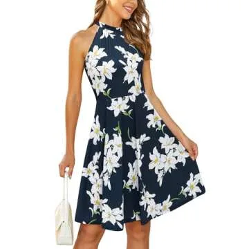 OUGES Women's Summer Dresses Halter Neck Floral Dress Casual Sundress(Floral-7,L)