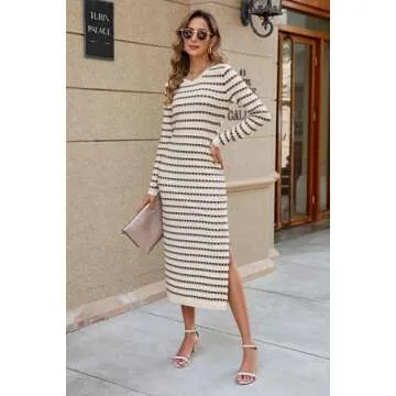 Wearing the OUGES Women’s Fall Maternity Dress is an experience of embracing your changing body while celebrating your unique style. The stretchy, breathable fabric allows you to move freely and feel confident in your skin, whether you’re capturing precious moments at a maternity shoot or enjoying a dinner out with friends. The beautiful striped pattern enhances your look, making every occasion more special while ensuring you feel chic and elegant, perfectly balancing style and functionality throughout your pregnancy.