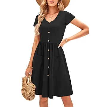 Designed with functionality in mind, the OUGES dress includes unique decorative front buttons that add a touch of elegance without sacrificing practicality. With two convenient side pockets, you can easily carry your essentials like your phone or keys without the bulk of a handbag. Choose between solid colors or charming floral prints to express your unique style. This dress is crafted to hide tummy areas, enhancing your figure while providing utmost comfort.