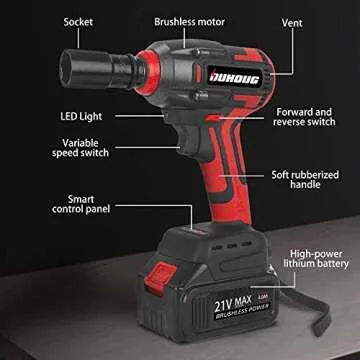 OUHOUG Cordless Impact Wrench, 1/2 Chuck Impact Driver/Drill/Screws with 3200RPM Variable Speed, Torque 300 ft-lbs,21V Lithium-Ion 4.0AH Battery Pack and Replacement battery