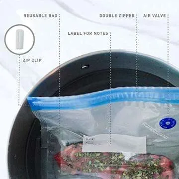 OUII Sous Vide Bags for Joule and Anova Cookers - 15 Reusable BPA-Free Sous Vide Bags with Vacuum Hand Pump in Various Sizes -Vacuum Sealer Bags Food Storage Freezer Safe - Fits Any Sous Vide Machine