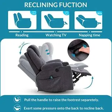 OUINCH Manual Swivel Glider Rocker Recliner Chair with Massage and Heat, 2 USB Ports, 2 Cup Holders, 2 Side Pockets and 2 Front Pockets, Fabric (Grey)