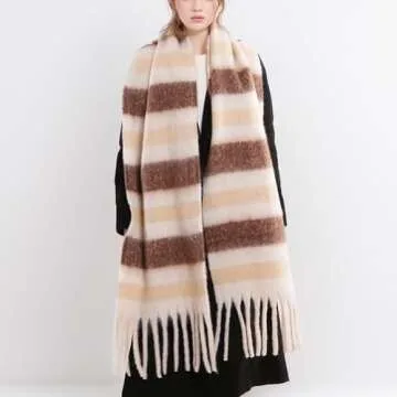 Show more This luxurious winter scarf is more than just an accessory; it's a statement piece that ensures warmth and style throughout the colder months. Crafted from soft, high-quality polyester, this big colorful chunky scarf features a stunning plaid pattern that never goes out of fashion. The tassel trim adds a touch of elegance, making it perfect for both enjoyable winter outings and cozy evenings at home. With its plush texture reminiscent of cashmere and wool, it wraps you in comfort, providing a cozy feeling similar to cotton sun-kissed by a gentle breeze.