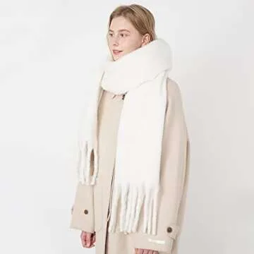 OUNIYA Large Chunky Scarf Oversized Fluffy Scarves Blanket Big Wool Thick Winter Warm (Pure White)