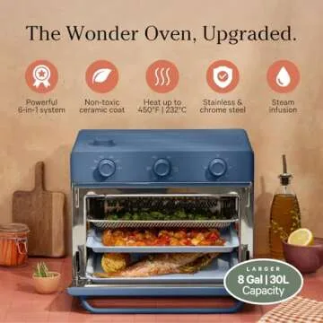 Our Place Large Wonder Oven | 6-In-1 Toxin-Free Air Fryer & Toaster with Steam Infusion | Family-Sized 32QT, 1700W Countertop Design | Includes Bake Tray, Fryer Basket, Large Racks | Blue Salt