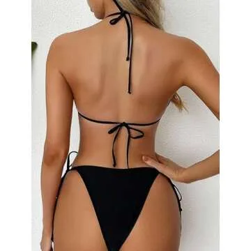 OURMENNA Women's Bowknot Decoration Bikini Sets High Waisted Halter Triangle Summer Swimsuit Bathing Suit Red L