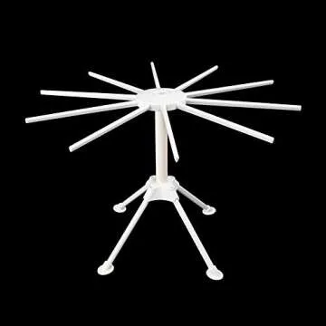 Ourokhome Collapsible Pasta Drying Rack, Plastic Foldable Homemade Fresh Spaghetti Stand Dryer Noodle Hanger for Kitchen with 10 Arms, Stable, Easy Storage, Quickly Set Up (White)
