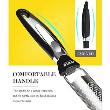 Ourokhome Kitchen Lemon Zester, Stainless Steel Hand Held Parmesan Cheese Grater for Ginger, Chocolate, Coconut, Lime, Nutmeg, Citrus, Fruit, Vegetable with Cleaning Brush, Dishwasher safe, Black