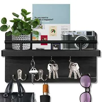 OurWarm Key Holder for Wall Decorative with 5 Key Hooks, Wall Mounted Key Hangers for Wall with Mail Key Rack, Wooden Mail Organizer with Shelf
