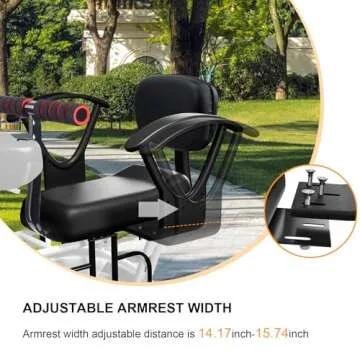 Yes, the seat features a cushioned backrest and armrests for added comfort during rides.