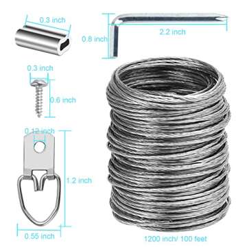 Ouskr 100 Pcs Picture Hanging Wire Kit, 100 Feet Heavy Duty Wire Picture Hanging for Photo Mirror Frame Artwork, Included D Ring Picture Hangers, Screws, Aluminum Sleeves, Screwdriver, up to 30lbs