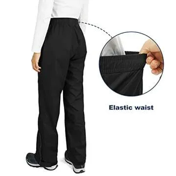 Outdoor Ventures Women's Rain Pants Packable Waterproof Hiking Pants Windproof Breathable Outdoor Rain Over Pants Black